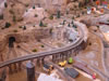 All buildings are wooden and made from kits (usually some form of laser cut) and hand painted. Trestles, rocks, cliffs, mountains, etc., were handmade. Most vehicles, small bridge near the control panel and the tunnel portals were purchased then assembled and painted as needed. The background was constructed by gluing stitched photographs to foam board. I took the photographs and and then manipulated them in Photoshop.